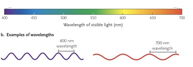 · Visible light has wavelengths between about 700 nm (red light) and 400 nm (blue light)