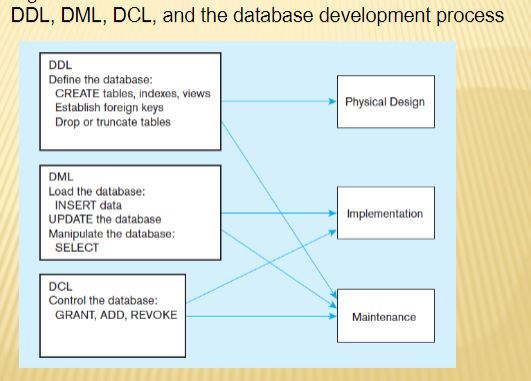 How DDL, DML, and DCL affect the database development process. Visual