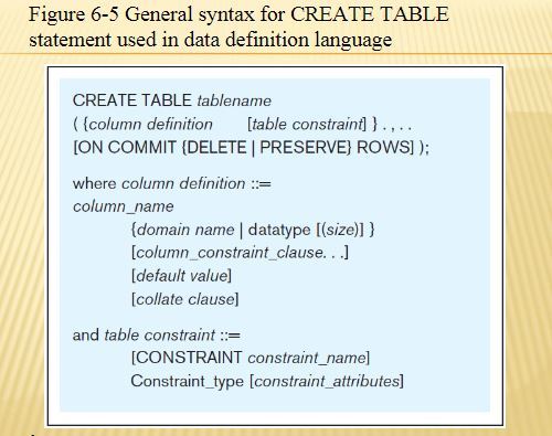 General Syntax for CREATE TABLE in DDL