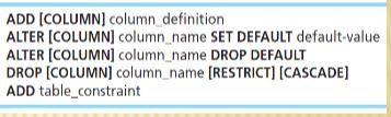 ALTER TABLE table_name alter_table_action;