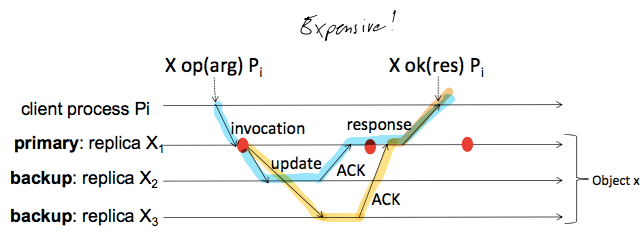 Guarantee sequential consistency: Order in which the primary receives clients’ invocations define the order of the operation on the data item(s).