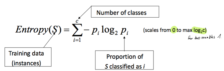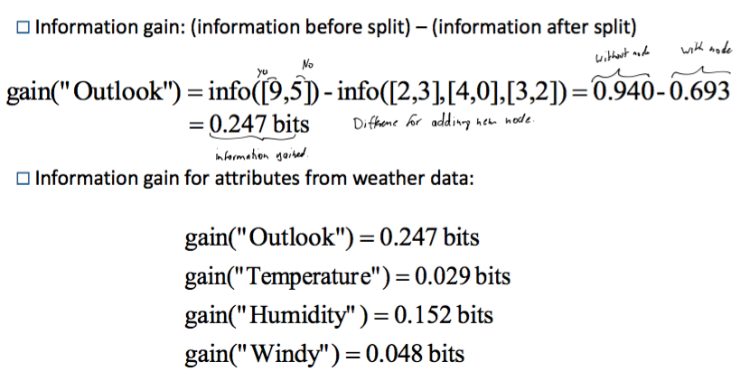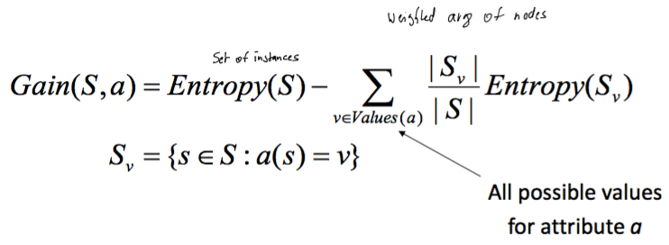 Gain(S,a) is the information gained adding a sub-tree (Reduction in number of bits needed to classify an instance)