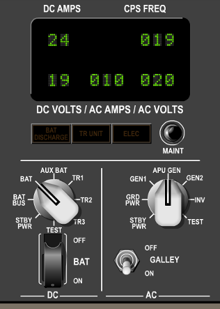 AC and DC Metering panel on the Forward Overhead panel.