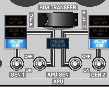 AUTO (guarded position) – bus tie breakers operate automatically to maintain power to AC transfer busses from any operating generator or external power.