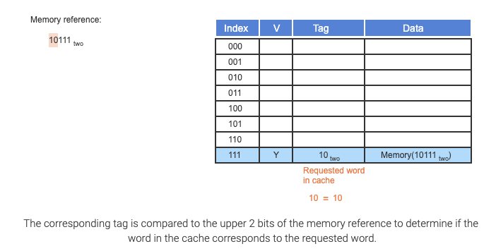field in a table used for a memory hierarchy that contains the address information required to identify whether the associated block in the hierarchy corresponds to a requested word