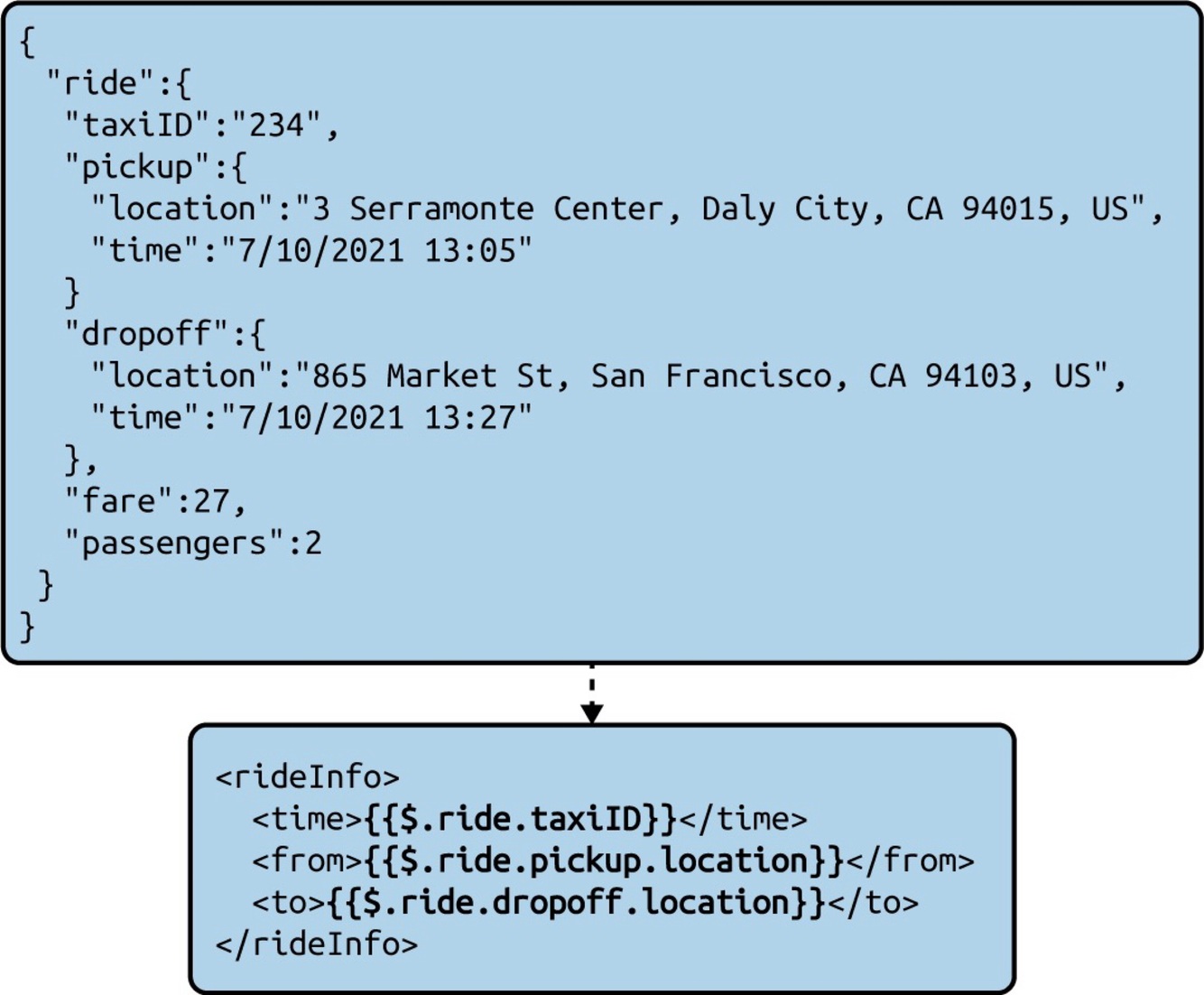 Messages can be transformed by using various techniques, such as via code with traditional programming languages and through specialized applications that perform data mapping. These applications include service buses and stream-processing systems that can run on the cloud, such as Apache Camel, KSQL, Amazon Kinesis, and Azure Stream Analytics.