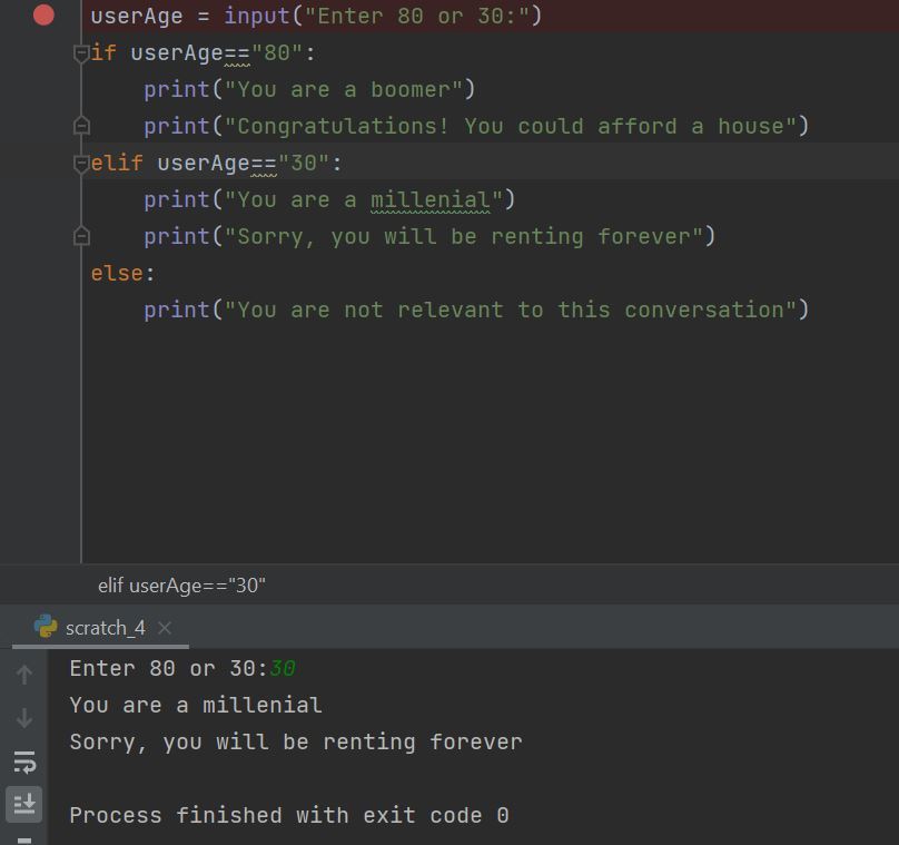 userAge = Input(“Enter 80 or 30:”)