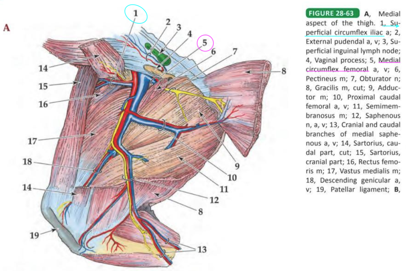 Sartorius cranially, pectineus caudally.