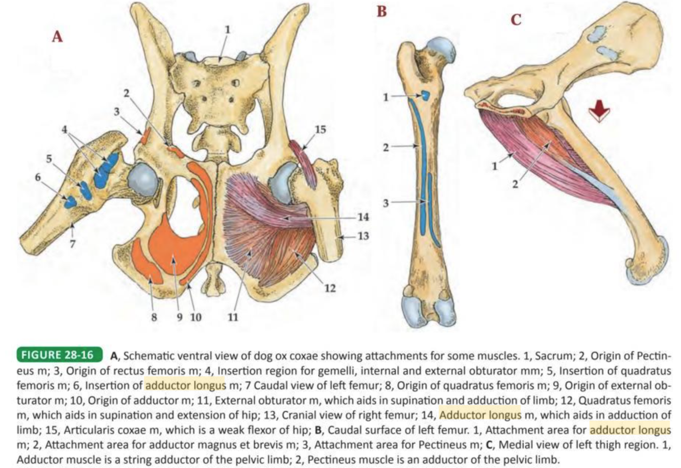+ Caudofemoralis in cats. N.B. = abductor cruris!