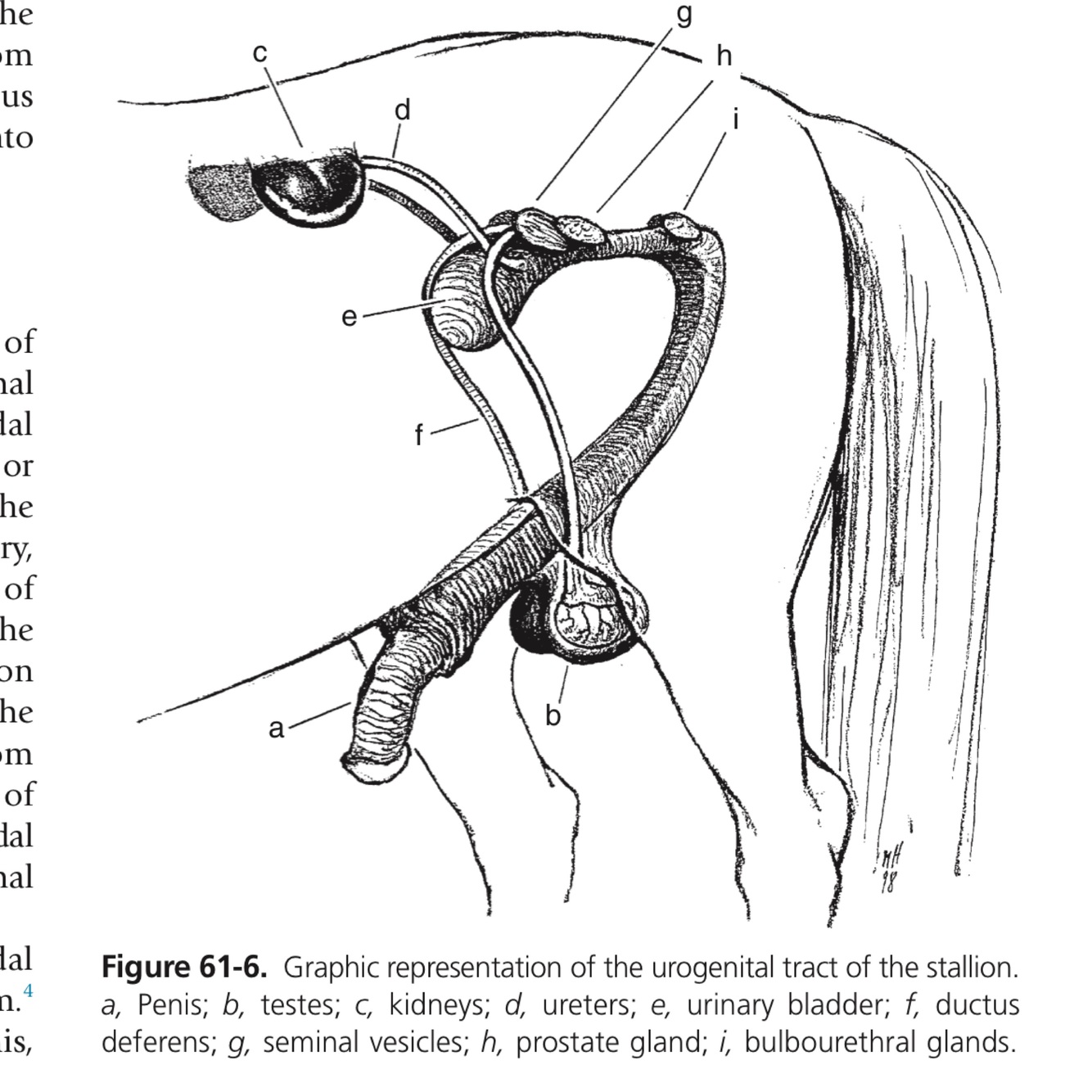 The female horse’s urethra is about 5 cm (2 in) long, and its external opening lies at the anterior end of the vestibule.