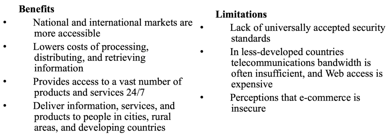 First, it increases an organization’s reach, defined as the number of potential customers to whom the company can market its products. In fact, e-commerce provides unparalleled opportunities for companies to expand worldwide at a small cost, to increase market share, and to reduce costs.