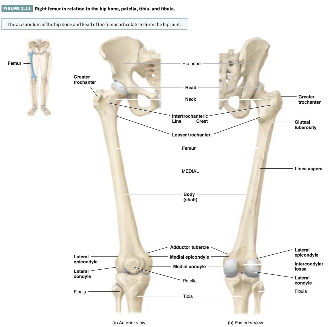 Crest, epicondyle, line, spinous process, trochanter, tubercle, and tuberosity.