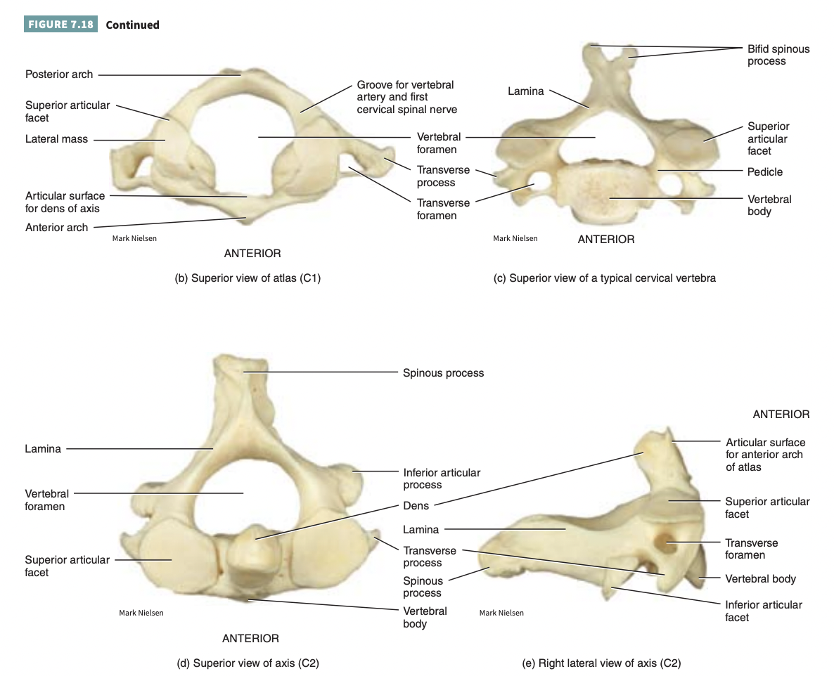Sites allowing the passage of soft tissues (such as blood vessels, nerves, ligaments, and tendons) or formation of joints.