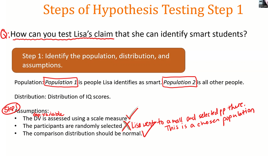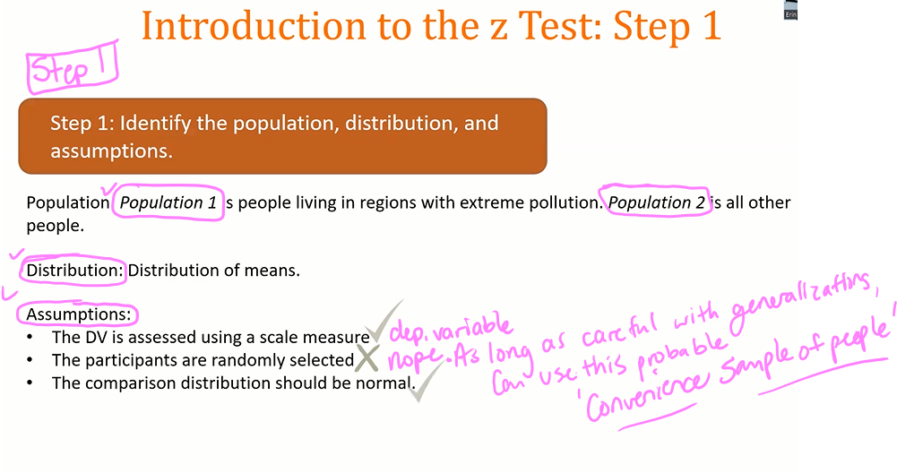 STEP 1: ASSUMPTIONS, POP., SAMPLE?