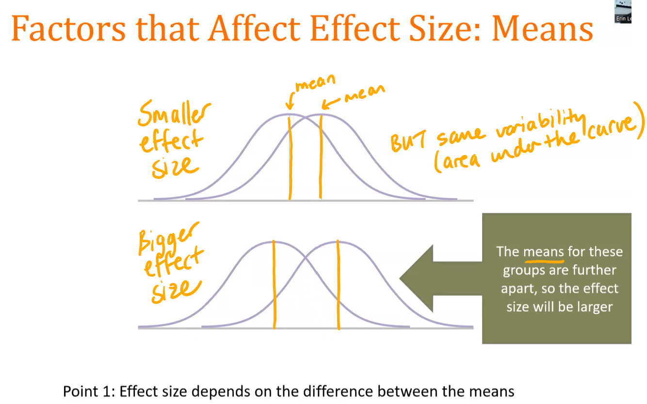 Because effect size is not affected by the sample size, there are only 2 things that will affect the value