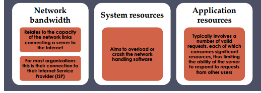 3 categories of resources that can be attacked during a DOS attack
