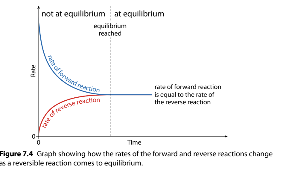 Macroscopic properties are constant (concentrations of all reactants and products remains constant) and the** rate of the forward reaction is equal to the rate of the reverse reaction**