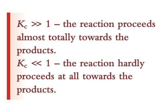 If Kc is very much less than 1 = the reaction hardly proceeds at all towards the products (the position of equilibrium lies a long way to the left)