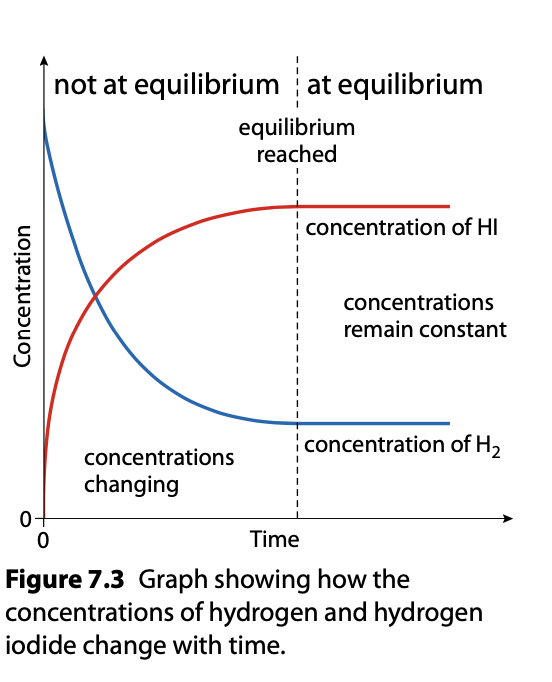 graph: the conc of H2 decreases at first, until it levels off when equilibrium is reached