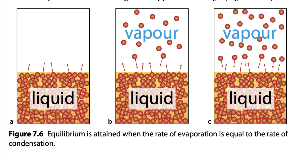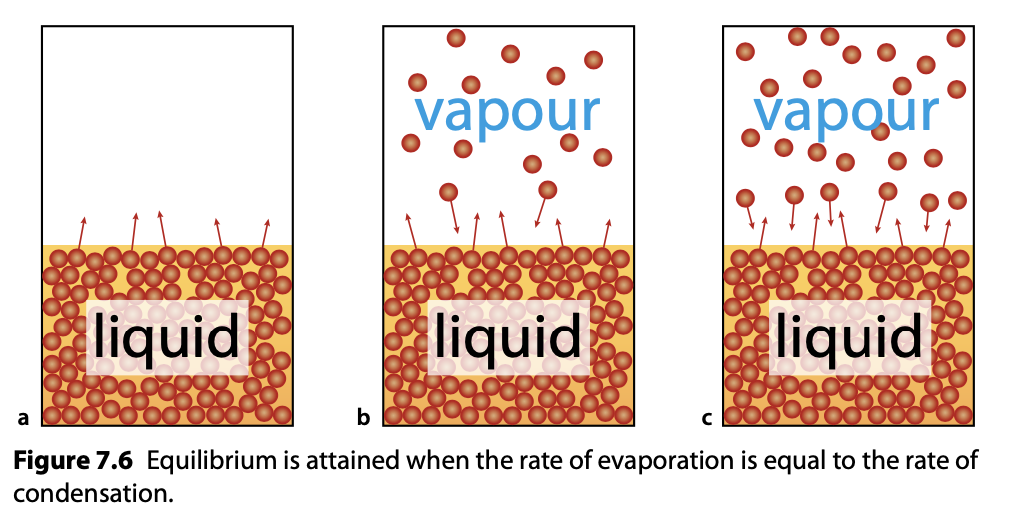 when the rate of evaporation (vaporisation) is equal to th rate of condensation, the colour of vapour remains constant and a state of equilibrium has been reached. This is known as a phase equilibrium because it involves a change in phase (state)
