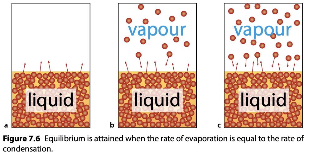 Consider a volatile liquid, such a bromine, in a closed container. How is equilibrium reached?