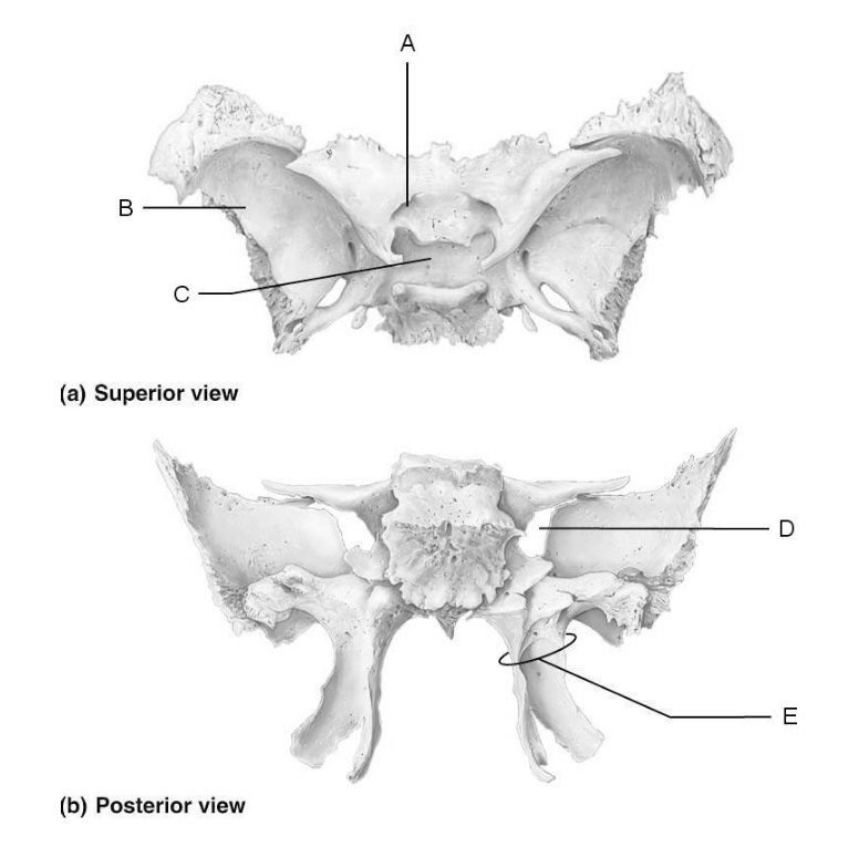 Forms parts of the middle cranial fossa, dorsal walls of the orbits, and external walls of the skull. → B