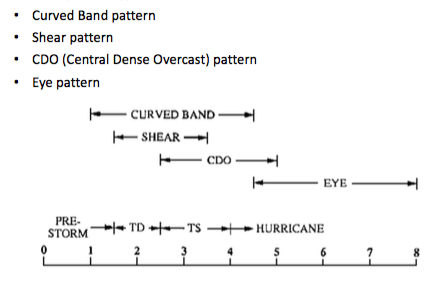 The Dvorak technique is based on appearance of the storm from IR and visible satellite imagery.