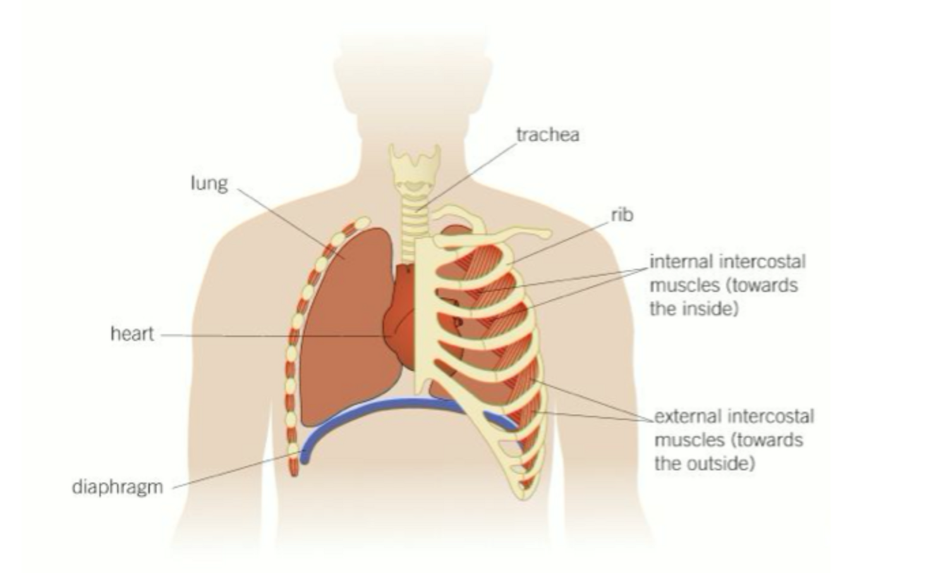 The external intercostal muscles relax so the ribs move down and inwards under gravity.