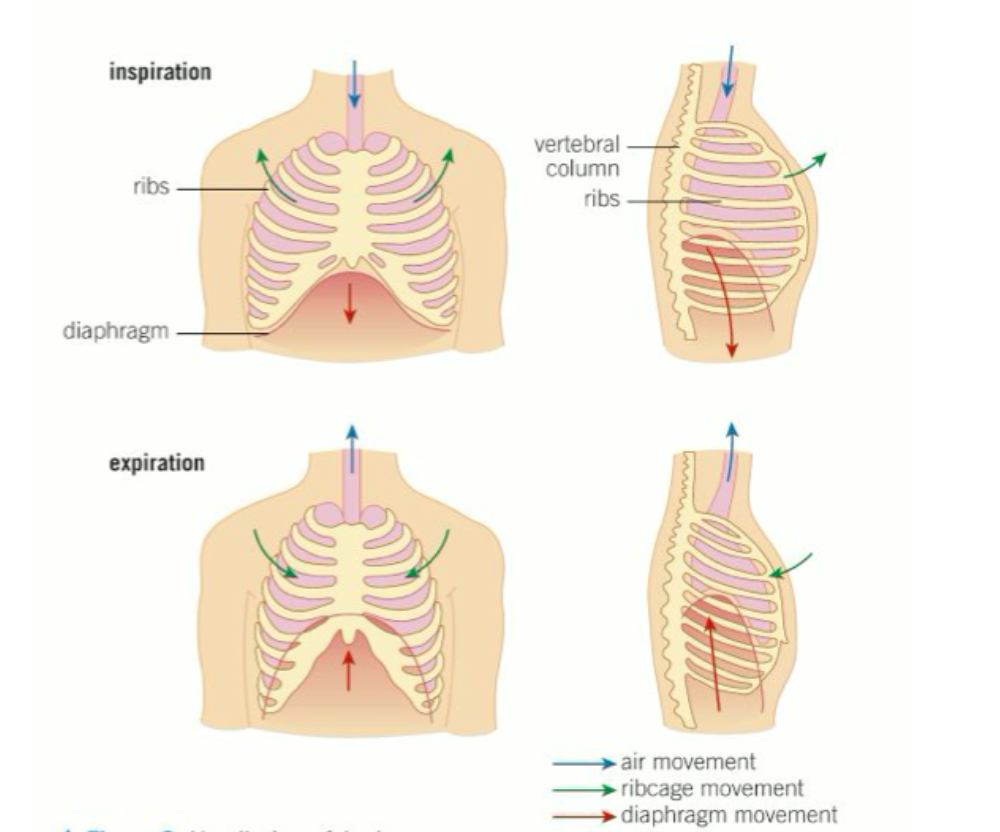 Air is moved in and out of the lungs as a result of pressure changes in the thorax (chest cavity) brought about by the breathing movements.
