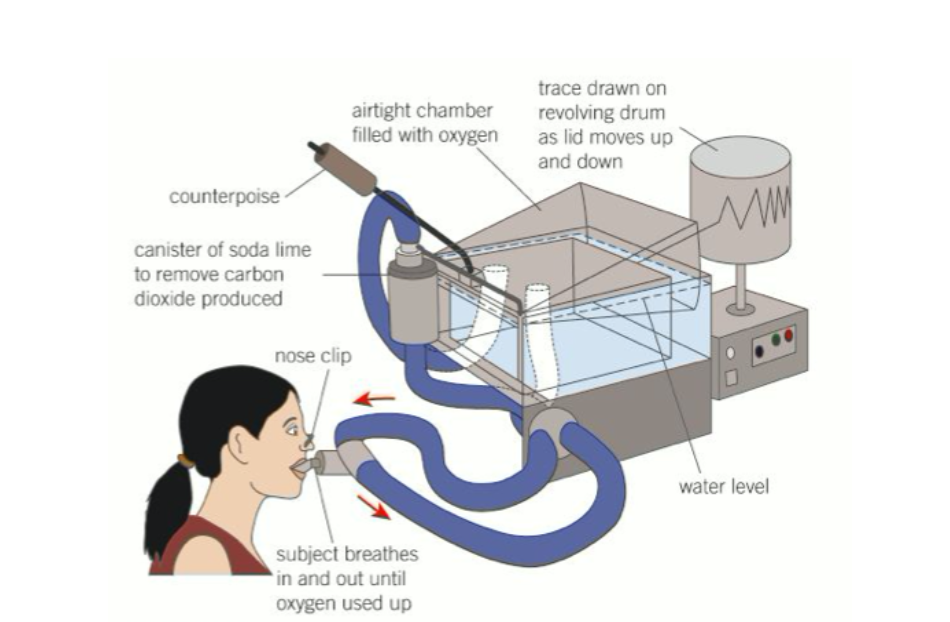 Measuring the capacity of the lungs (volume of air that is drawn in and out of the lungs):
