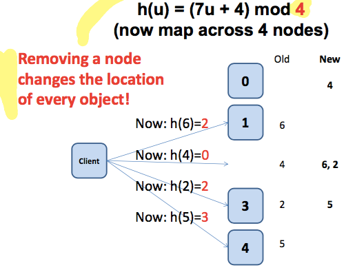 h(u) = (7u + 4) mod 5 (Problem when failing node?)