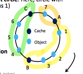 • Assign each URL to the closest cache point in clockwise direction on the circle