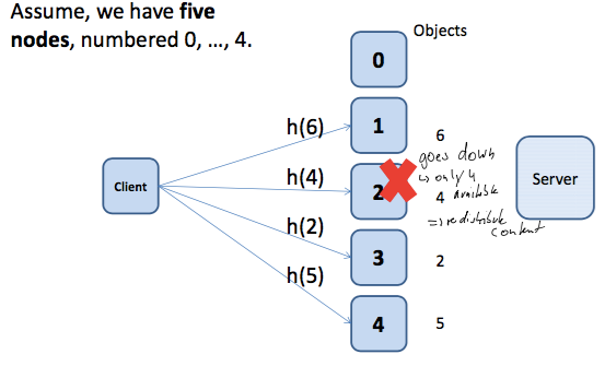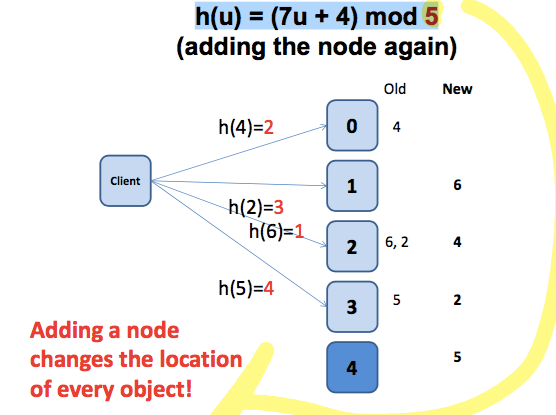 h(u) = (7u + 4) mod 5 (Problem when failing node?)