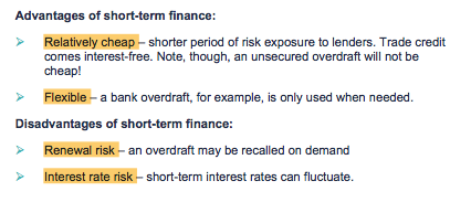 What are the advantages and diadvanatges of short term finance?