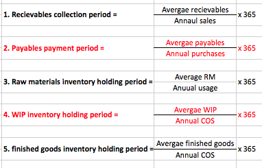 Give the equations for the following in days…