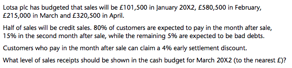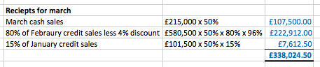 50% cash sales made in the month of sale