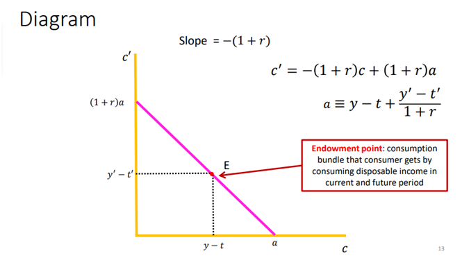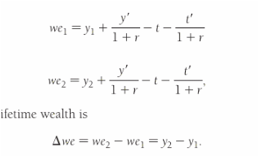 Quantity of resourcs available to consumer (in current consumption goods) to spend on consumption goods over their lifetime (2 periods)