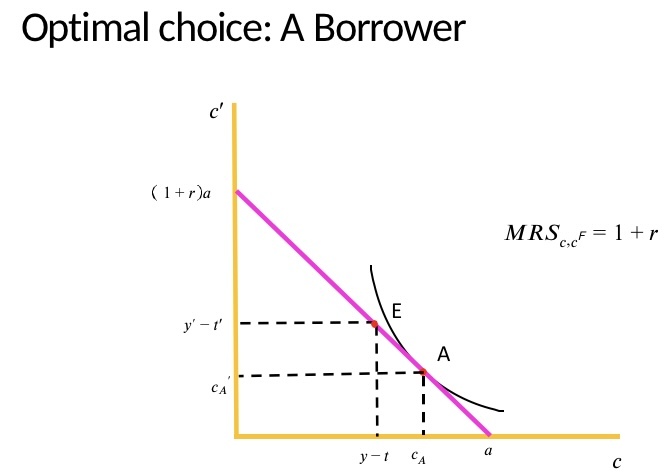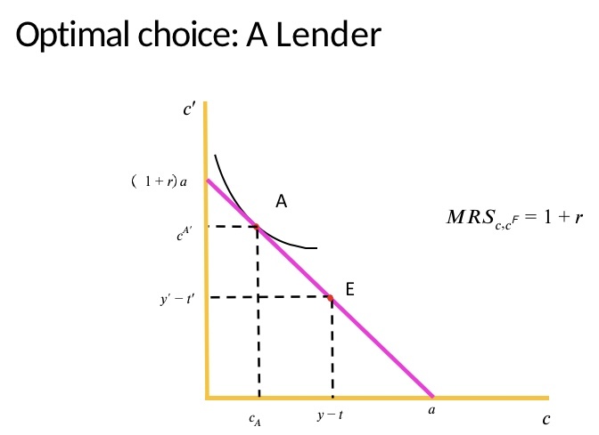 rate at which he or she is willing to trade off current consumption for future consumption is the same as the rate at which he or she can trade current consumption for future consumption in the market (by saving).