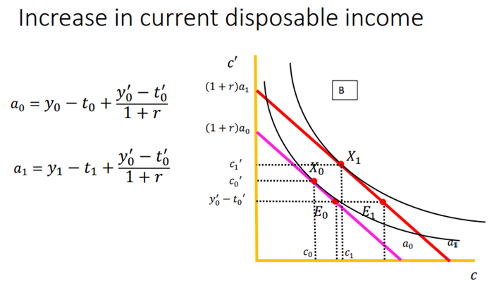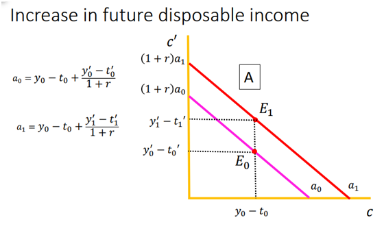 As both current and future goods are normal, then when there is a shift in the budget constraint, there is an increase in current and future income