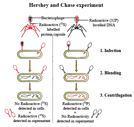 Radioactive phosphorus-labeled phages attach to bacterial cell membranes in a liquid solution and infect the bacteria. Using a centrifuge, Hershey and Chase rapidly spun the samples to separate the bacterial cells from the surrounding solution