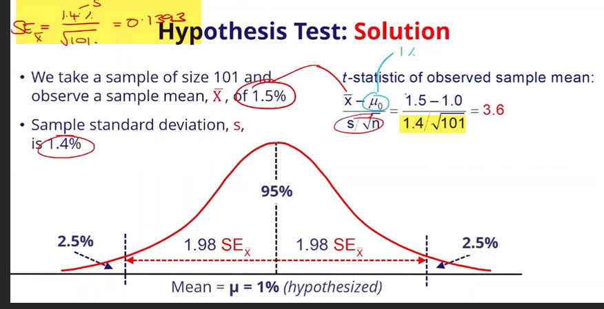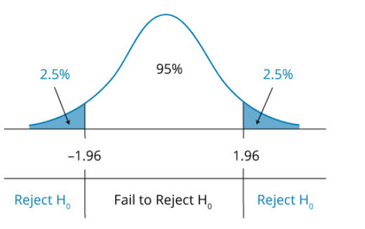 for 95%, with 5% significant ( 100-95 = 5), we need to go + or - 1.96 to hit the tail.
