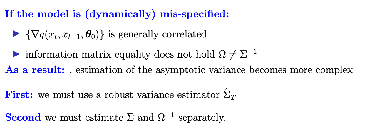 What happens to estimating the asymptotic variance when a model is not correctly specified?