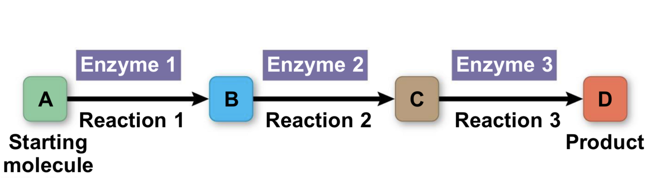 begins with a specific molecule and ends with a product. Each is catalyzed by a specific enzyme
