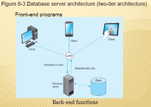 In a two-tier database server architectures what is the Client worksation responsible for?