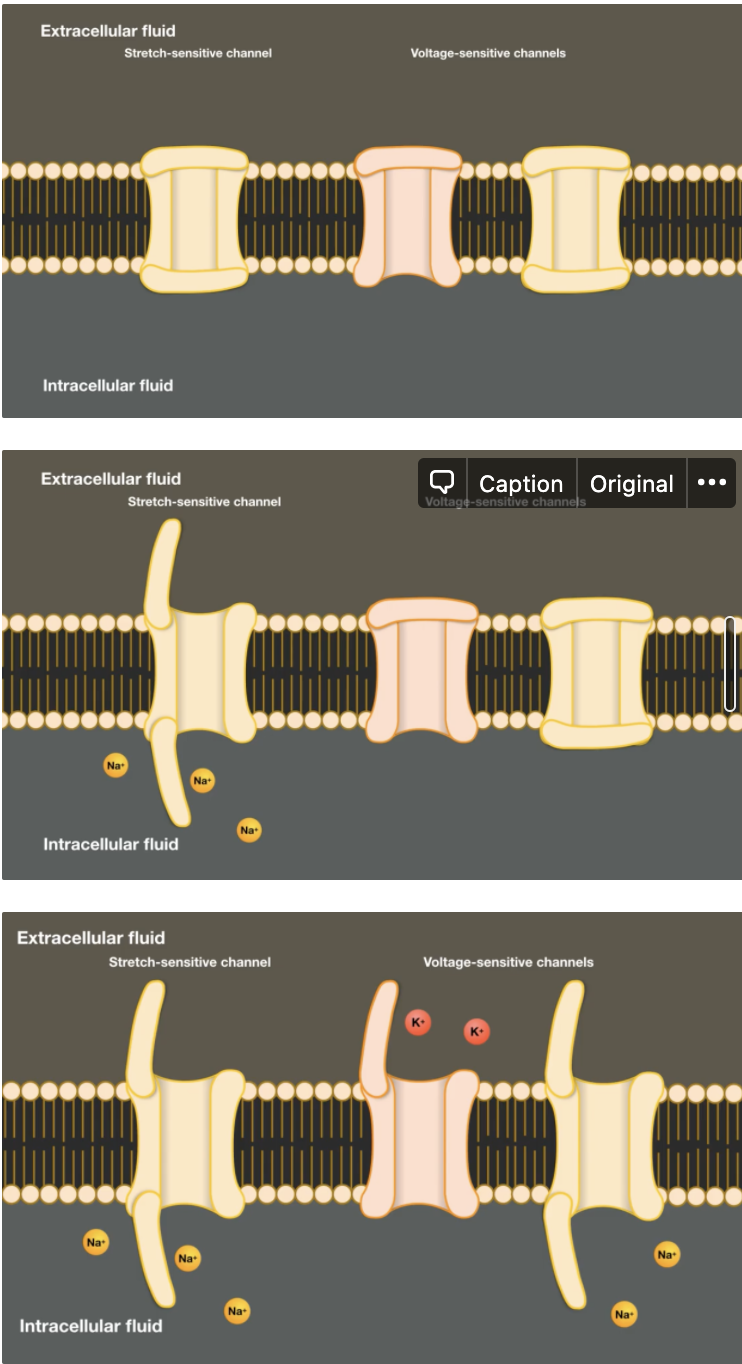 mechanical energy activates receptor cells that are sensitive to touch or pressure → receptors generate action potentials