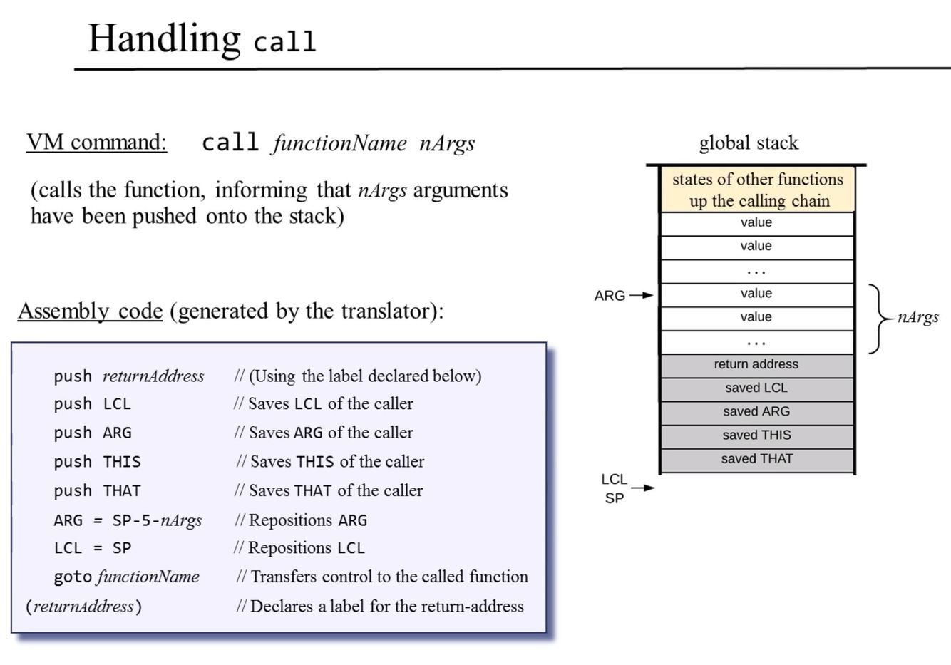 call functionName nArgs