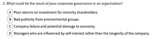 *c. a company’s management, its board, its shareholders and other stakeholders.