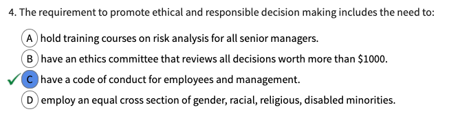 *c. Under CSR principles the obligations of the organisation include economic performance as well as benefiting employees, the community in which it operates and broader society.