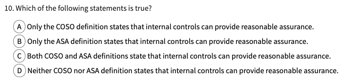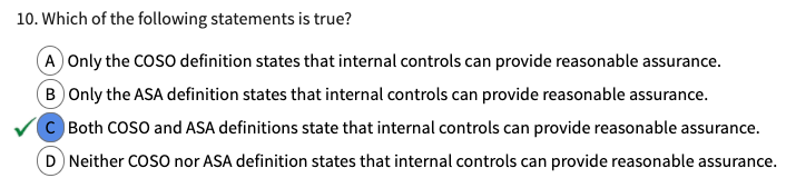 Based on the COSO definition of internal controls, which of the following is NOT an aim of internal controls?