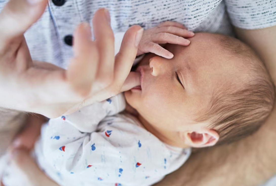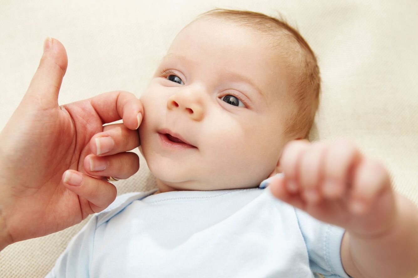 grasping reflex in which an infant grabs onto a finger placed in the infant’s palm